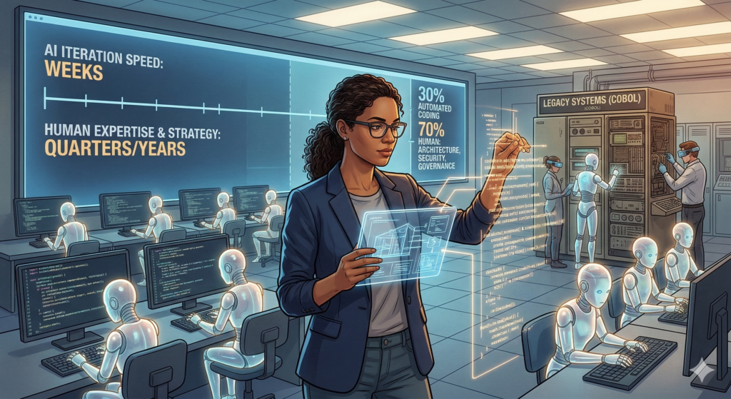 - Legacy Systems Are AI’s Next Frontier: From modernizing COBOL systems running 95% of ATM transactions to orchestrating Conversational ERP, AI opens massive opportunities. But these tasks demand understanding business logic and ensuring compliance—capabilities where human expertise remains irreplaceable.